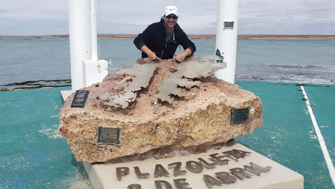Es esta última afición, y su apasionante sueño de ir a Malvinas desde los acontecimientos de 1982 lo que lo llevó, el pasado 13 de marzo de 2019, a ser protagonista del “Desafío Malvinas”, reto consistente en atravesar nadando las frías aguas del Estrecho San Carlos, canal que separa la Isla Gran Malvina de la Isla Soledad, junto a la compañía de Cristina Ganem, experta nadadora de aguas abiertas oriunda de la provincia de Río Negro y que en la actualidad reside en la provincia de Neuquén.