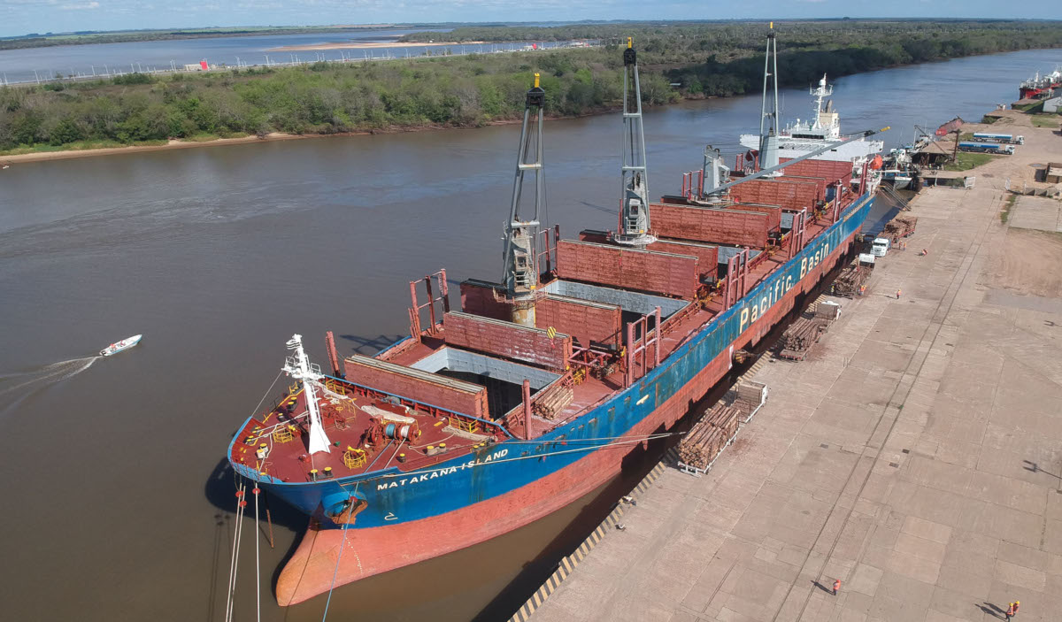 De forma simultánea llegó a principios de semana el buque Matakana Island, un carguero de 175 metros de eslora con bandera de Hong Kong, que cargó unas 20 mil toneladas de troncos de madera de pino entrerriano con destino a China.