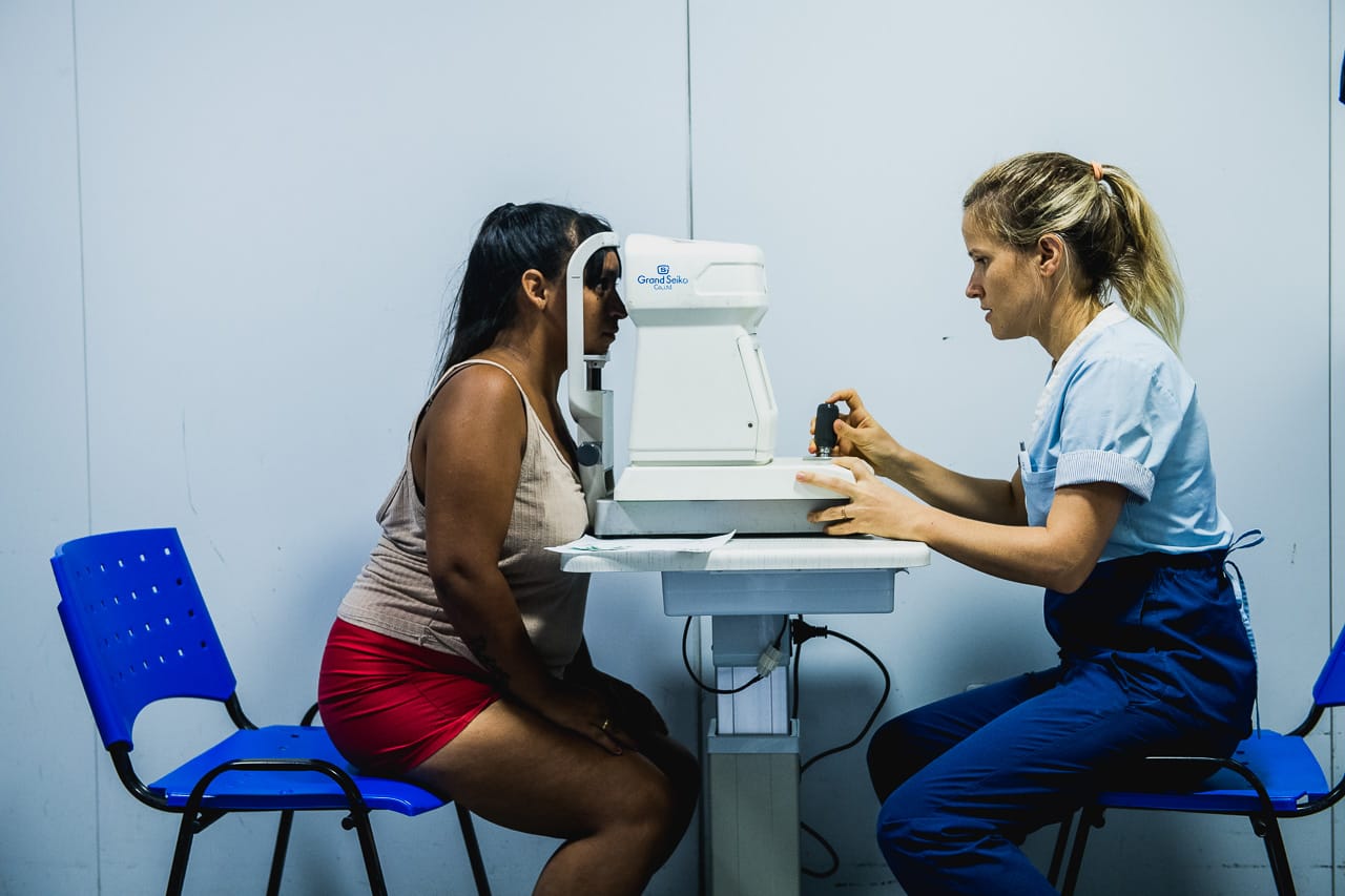 A través del Programa Nacional Mirarnos, los dispositivos móviles de la Secretaría de Abordaje Integral del Ministerio de Desarrollo Social, llegan a distintas partes de Argentina para realizar exámenes visuales y entregar anteojos en el acto a los habitantes de la zona que los necesiten.