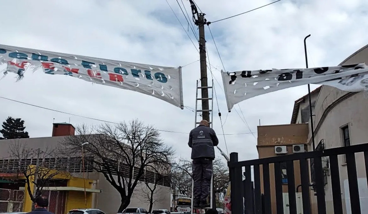 Enersa solicitó a la comunidad “abstenerse de colgar cualquier tipo de letreros (pasacalles, avisos, cartelería en general) en postes, columnas o estructuras que soporten líneas eléctricas, atento al riesgo de quemaduras o electrocución que implica dicha acción”.