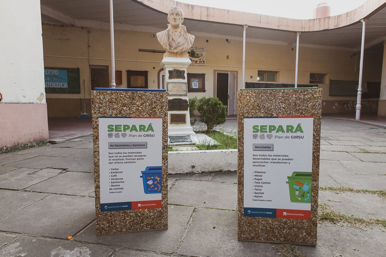 La doble contenerización y separación de residuos en el macrocentro es una acción del plan de gestión integral de residuos sólidos urbanos (GIRSU) del Municipio. La promoción del programa Separá se realiza en formato de taller en las escuelas de Paraná y es acompañada con la entrega de cestos de residuos con tapa color verde para reciclables, y con tapa azul, para no reciclables.