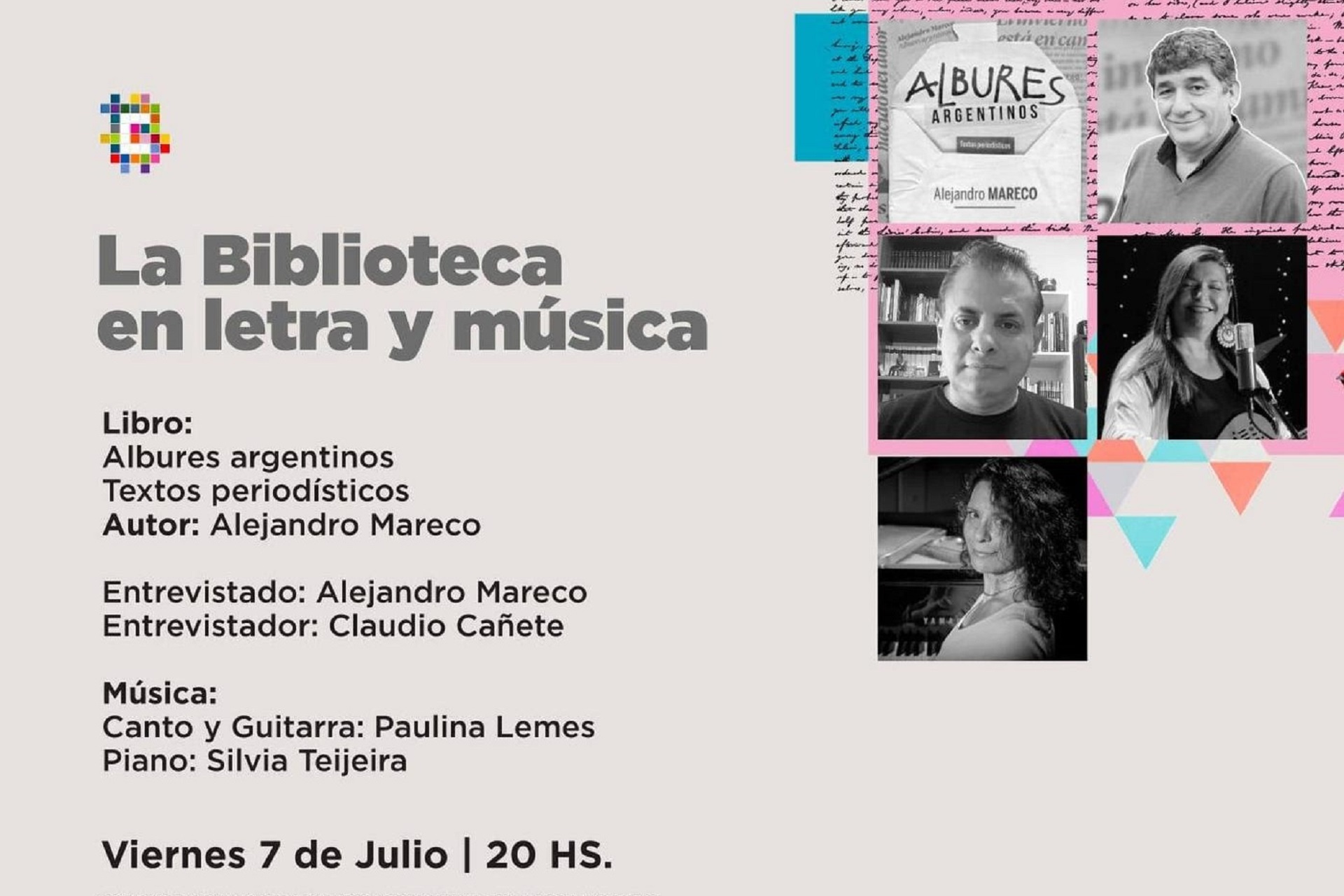 El ciclo se lleva adelante en la Biblioteca Provincial de Entre Ríos (Alameda de la Federación 278, Paraná) y busca revalorizar y homenajear a escritoras y escritores argentinos, con la participación de reconocidos periodistas entrevistadores y el acompañamiento de destacadas músicas solistas de la provincia.