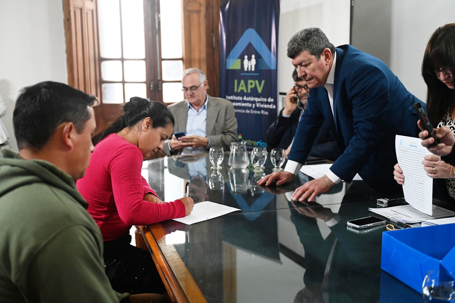 El acto se desarrolló en la Sala de Sesiones del Honorable Concejo Deliberante (HCD) de Gualeguaychú y fue encabezado por el presidente del IAPV, Manuel Schönhals, quien estuvo acompañado por la viceintendenta municipal, Julieta Carrazza; el senador provincial Jaime Benedetti, los vocales del organismo, Luis Uriona, José Artusi y Aníbal Steren y la escribana Mayor de Gobierno, Sandra Taborda.