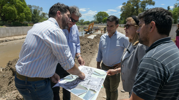 La intendenta Rosario Romero recorrió los trabajos, que se reiniciaron con fondos de la Municipalidad. Desde su reactivación, se priorizó la culminación de las tareas básicas del tramo que va desde calle Ambrosetti hasta el puente de calle Solanas, en una extensión de 800 metros a lo largo del arroyo.