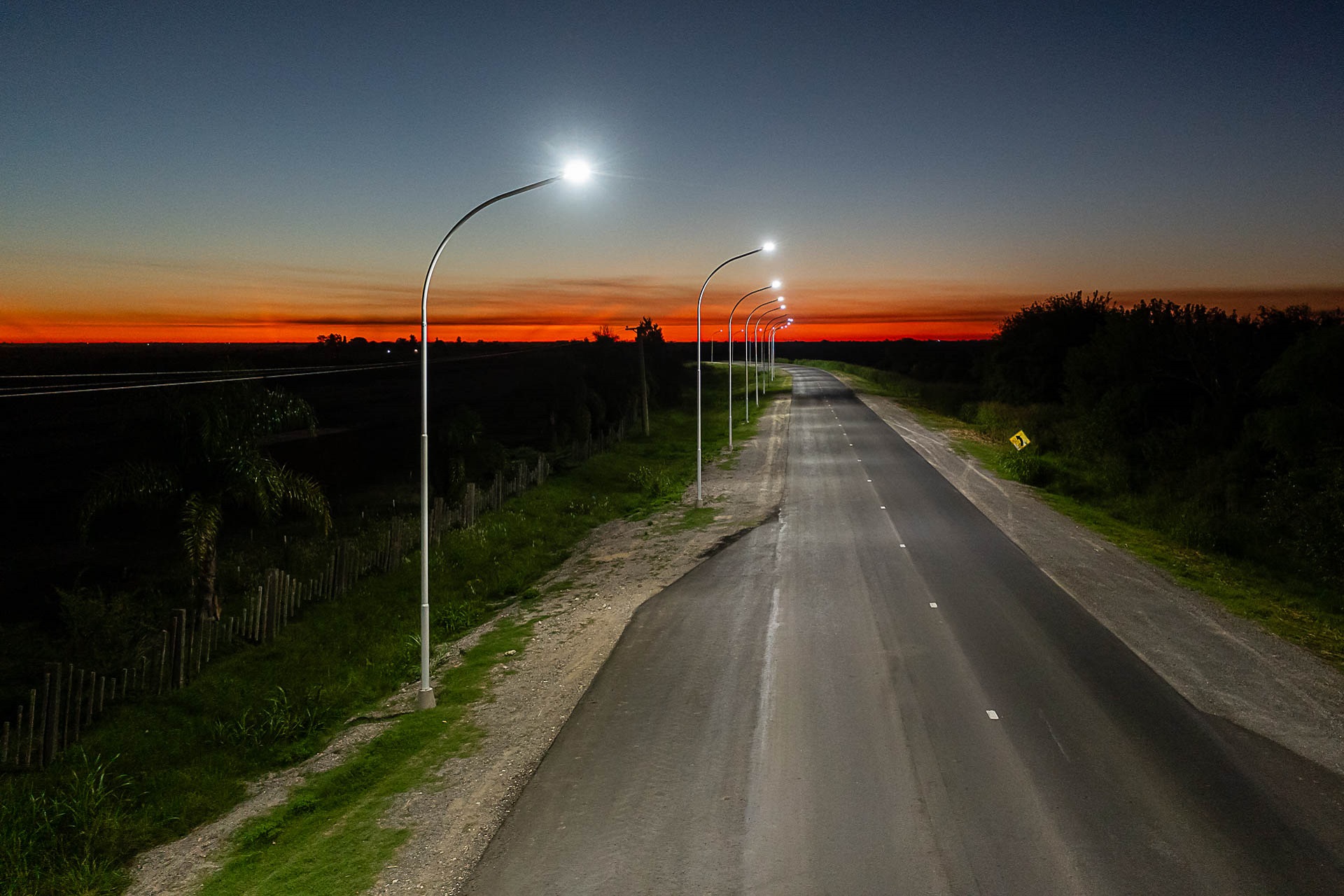 Respecto de la iluminación, su instalación contempló la ejecución y puesta en servicio de un sistema tipo LED (sigla, en inglés, de diodo emisor de luz) en el acceso al complejo Interlagos sobre la ruta provincial Nº10 – María Grande. Se prevé la instalación de 34 columnas, todas de 9 metros libres con un brazo de 2,50 metros de longitud.