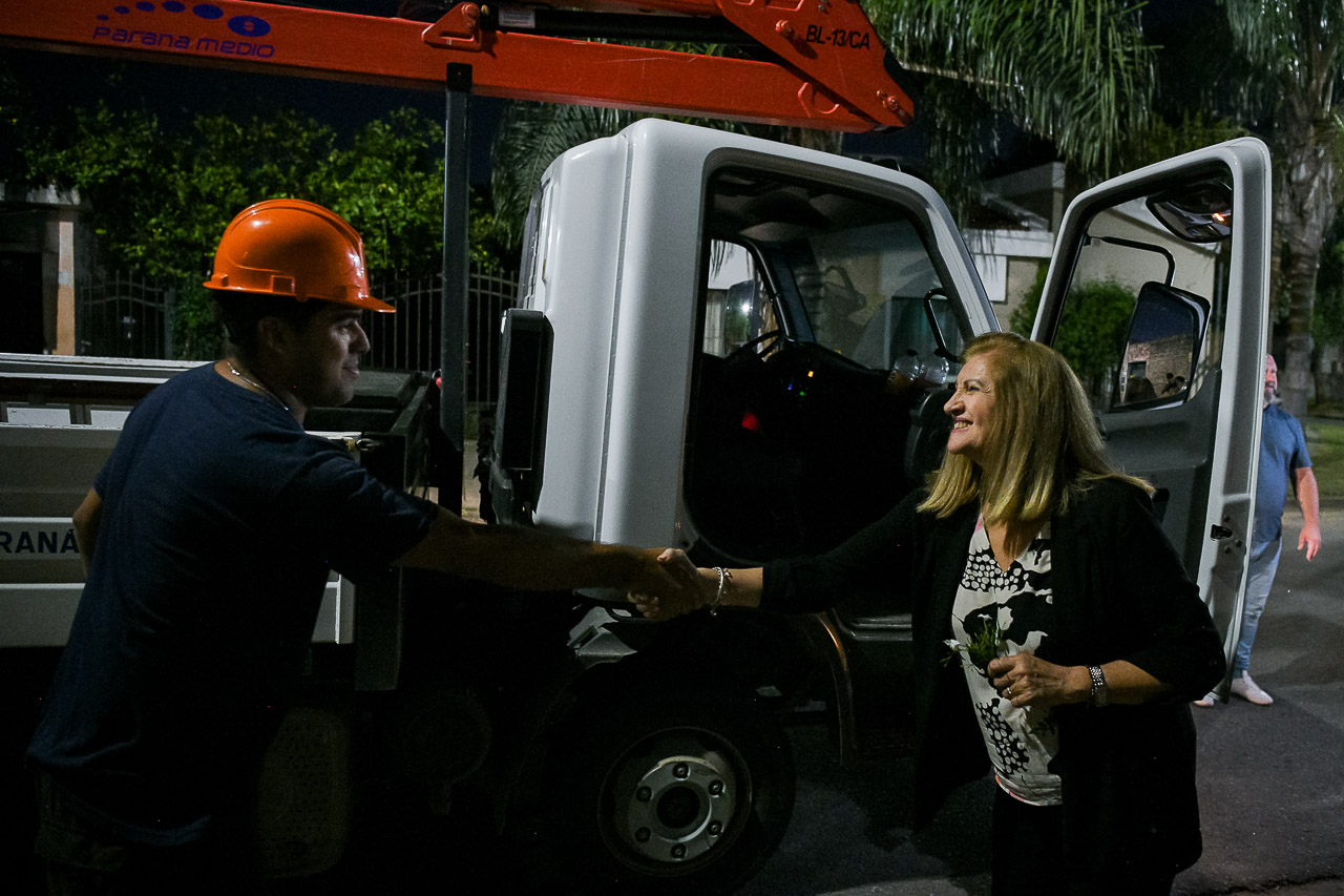 En la vecinal Lugones se instalaron 180 artefactos nuevos entre las calles El Paracao, Espejo, Avenida de las Américas y Sarobe. La intervención es parte del plan Paraná 100% LED, cuyo objetivo es disminuir el consumo de energía y mejorar la seguridad urbana. La intendenta Rosario Romero supervisó los trabajos.