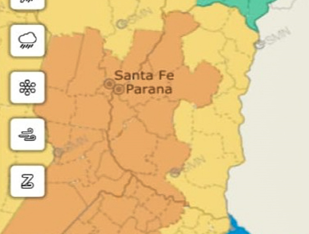 En tanto, el resto de la provincia pasa a alerta amarillo y esta área será afectada por tormentas, algunas localmente fuertes. Se espera que las mismas puedan estar acompañadas por abundante caída de agua en cortos períodos, frecuente actividad eléctrica, granizo y ráfagas intensas que podrían alcanzar los 90 kilómetros por hora. Se prevén valores de precipitación acumulada entre 30 y 70 milímetros, que pueden ser superados de manera puntual.