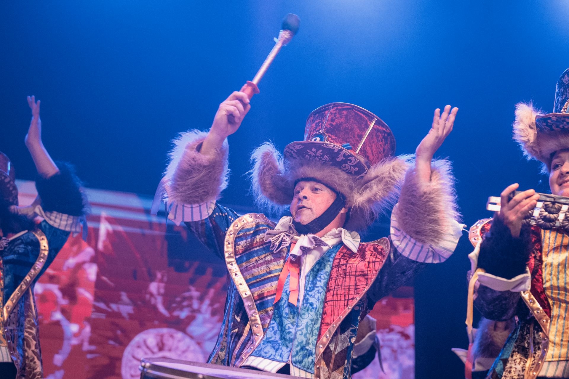 Previamente, en el Obelisco se desplegó una presentación, donde tres integrantes de las comparsas realizaron una intervención artística desde lo alto del monumento, mientras el resto del elenco permaneció en la base para interactuar con el público y generar contenido audiovisual. Más tarde, se llevó a cabo un cóctel de recepción en el foyer del Teatro Astros, donde se montó un espacio de prensa y producción de contenidos con artistas e influencers vinculados al carnaval.