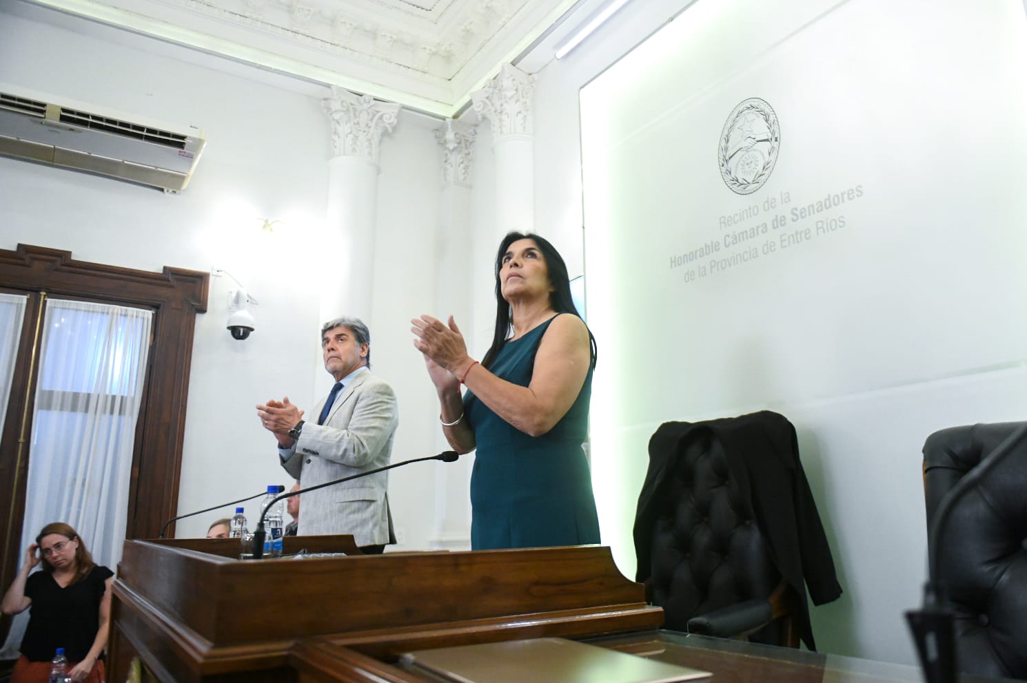 En el recinto de la Honorable Cámara de Senadores, la vicegobernadora y presidente del cuerpo, Alicia Aluani, presidió la sesión. Estuvo asistida por el secretario de Cámara de Senadores, Sergio Avero. La sesión contó con la presencia de 15 legisladores y quorum reglamentario.