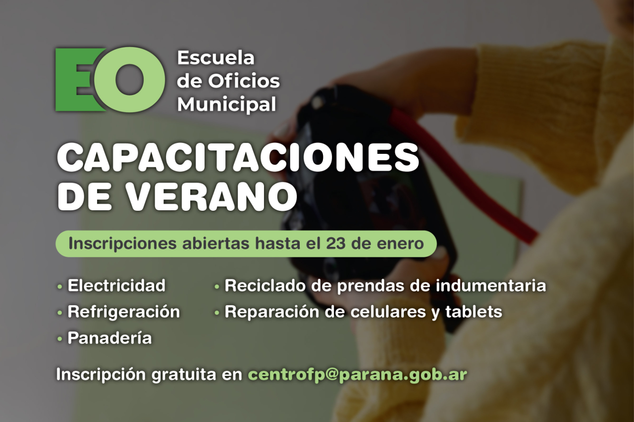 El Municipio de Paraná llevará adelante una nueva propuesta de capacitaciones de verano, orientada a la formación en oficios y al fortalecimiento de herramientas laborales para vecinas y vecinos de la ciudad.