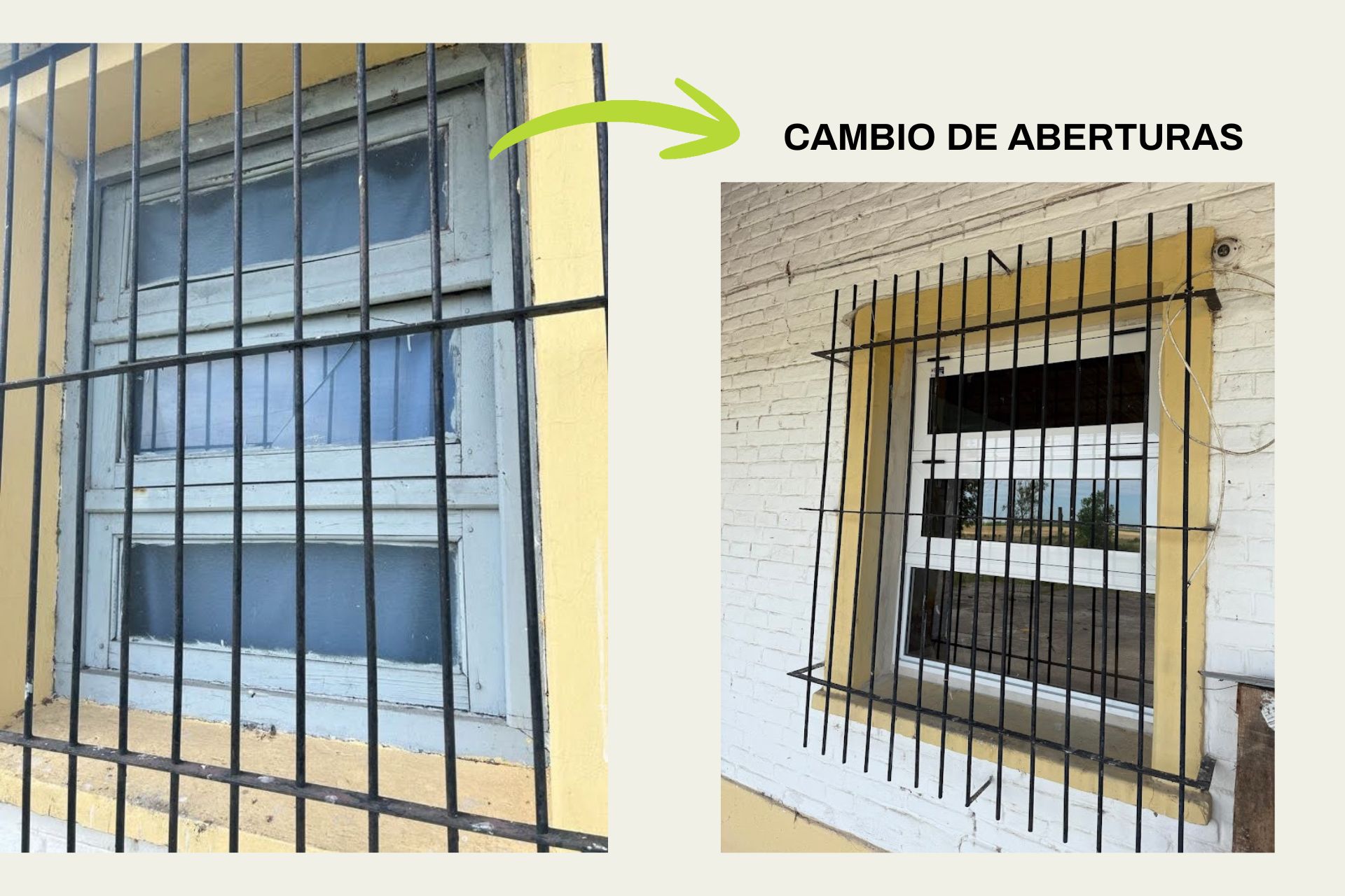 Además, se instaló un tanque de agua de 1.100 litros, junto con sanitarios y depósitos, se construyó una cabina externa para la garrafa de gas, con conexión segura al interior del edificio, y se refuncionalizó la instalación eléctrica mediante una nueva línea externa, tomacorrientes distribuidos y luminarias LED.