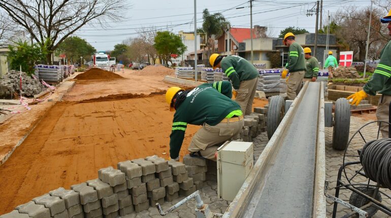 Acompañan con aportes la obra de pavimento urbano en Villa Elisa