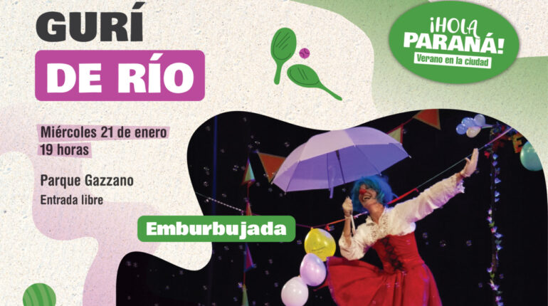 Este miércoles 21 de enero a las 19 hs, en el Parque Gazzano, se realizará una nueva jornada de Gurí de Río, propuesta cultural de la Municipalidad de Paraná destinada a infancias y adolescencias. La actividad es de acceso libre y contará con la participación del grupo teatral Emburbujada. El ciclo propone espacios de encuentro […]