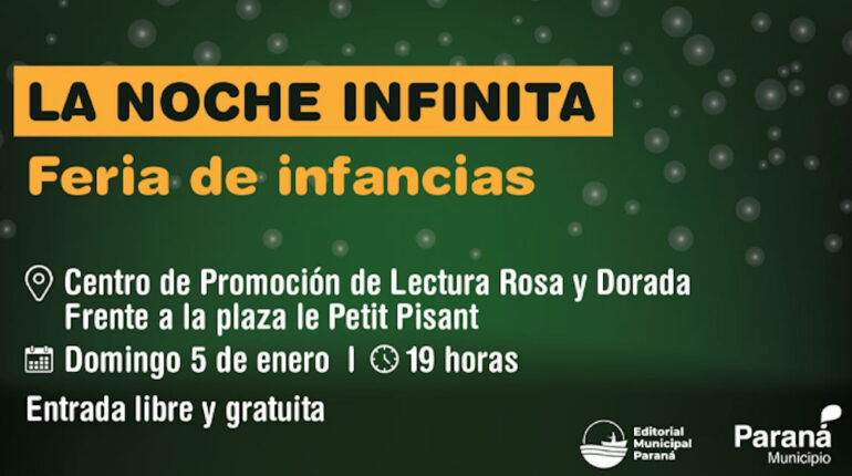 Se trata de “La noche infinita: feria de infancias”, un encuentro con los libros, la música y la fantasía. Será el 5 de enero a partir de las 19 hs en el Centro de Promoción de Lectura Rosa y Dorada. Entrada libre y gratuita. La iniciativa ofrecerá “Cuentos alunados”, una oportunidad especial para que las […]